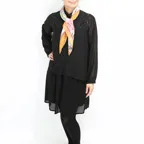 小ぶりなスクエアサイズで、アスコットタイのようにシャツやブラウスの中におさめて使うこともできます。室内でも巻いたままでいられるので使いやすくなっています。
