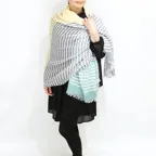 マルチカラーのアクセントショール。空気みたいに軽い着け心地。カジュアルな普段使いにぴったりです。