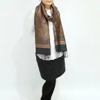 スタンダートな大判サイズで巻いても羽織っても、どちらも使いやすいタイプです。特に羽織は全体の印象が大きく変わります。