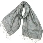 スタンダートな大判サイズで巻いても羽織っても、どちらも使いやすいタイプです。特に羽織は全体の印象がパッと華やかに、エレガントな雰囲気に変化します。