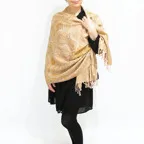 スタンダードな大判サイズで、首に巻くことはもちろん、室内でのひざ掛けにも、肩から羽織る使い方もできます。特に羽織りは、パッと華やかにエレガントな雰囲気に変わります。上半身を覆えるので、着ている服を気にせず合わせることができます。忙しい朝もコーディネートを気にする必要はありません。