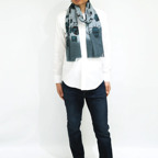 生地感よりカジュアルな普段使いにも、少しフォーマルなシーンでも使いやすいタイプです。スタイルや場所を問わず合わせることができる優れたストールです。