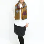 生地感よりカジュアルな普段使いにも、少しフォーマルなシーンでも使いやすいタイプです。スタイルや場所を問わず合わせることができる優れたストールです。