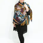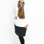 異なる色柄を組み合わせたおしゃれなデザイン。巻き方によってさまざまな表情がお楽しみいただけます。
