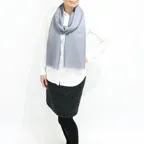 200cm×70cm大判サイズで、巻きでも羽織でもどちらも使いやすいストールです。上半身をすっぽりと覆うことができるため、トップスを気にせず合わせることができます。