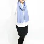 200cm×70cm大判サイズで、巻きでも羽織でもどちらも使いやすいストールです。上半身をすっぽりと覆うことができるため、トップスを気にせず合わせることができます。