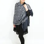 バランスの良い大判サイズで、巻きでも羽織でもどちらも使いやすいストールです。特に羽織は全面に施された刺繍が美しく輝き、サッとあしらうだけでゴージャスな雰囲気に変化します。