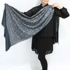バランスの良い大判サイズで、巻きでも羽織でもどちらも使いやすいストールです。特に羽織は全面に施された刺繍が美しく輝き、サッとあしらうだけでゴージャスな雰囲気に変化します。