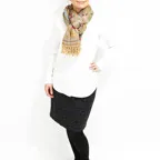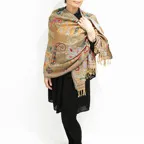 スタンダードな大判サイズで、首に巻くことはもちろん、室内でのひざ掛けにも、肩から羽織る使い方もできます。特に羽織りは、パッと華やかにエレガントな雰囲気に変わります。上半身を覆えるので、着ている服を気にせず合わせることができます。忙しい朝もコーディネートを気にする必要はありません。