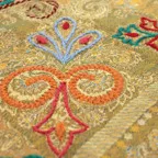 刺繍部:ピーコックグリーン&ライトブルー&ベージュ&レッド&オレンジ