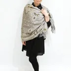 スタンダードな大判サイズで、首に巻くことはもちろん、室内でのひざ掛けにも、肩から羽織る使い方もできます。特に羽織りは、パッと華やかにエレガントな雰囲気に変わります。上半身を覆えるので、着ている服を気にせず合わせることができます。忙しい朝もコーディネートを気にする必要はありません。