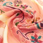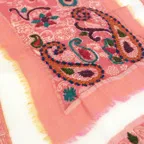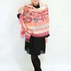 暖かく華やかなお出かけストール。立体感のある刺繍とレイヤード生地、鮮やかな色使いで、首元に華やかなアクセントをもたらします。