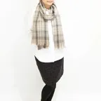 生地感よりカジュアルな普段使いにも、少しフォーマルなシーンでも使いやすいタイプです。スタイルや場所を問わず合わせることができる優れたストールです。