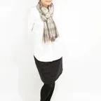 デイリー使いにぴったりのストール。色使いも主張しすぎず、合わせやすい一枚に仕上がっています。