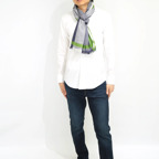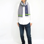 生地感よりカジュアルな普段使いにも、少しフォーマルなシーンでも使いやすいタイプです。スタイルや場所を問わず合わせることができる優れたストールです。