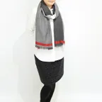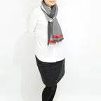 生地感よりカジュアルな普段使いにも、少しフォーマルなシーンでも使いやすいタイプです。スタイルや場所を問わず合わせることができる優れたストールです。