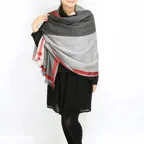 小粋な配色の上質ウールシルクストール。ライン使いでアクセントカラーが覗くワザありデザインです。