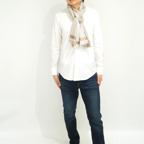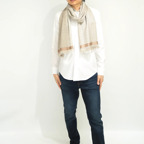 生地感よりカジュアルな普段使いにも、少しフォーマルなシーンでも使いやすいタイプです。スタイルや場所を問わず合わせることができる優れたストールです。