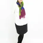 生地感よりカジュアルな普段使いにも、少しフォーマルなシーンでも使いやすいタイプです。スタイルや場所を問わず合わせることができる優れたストールです。