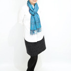 バランスがよいミドルサイズのため、ボリュームを抑えつつ様々な場面で活用できます。巻きでも羽織でもどちらでも使いやすくなっています。