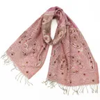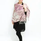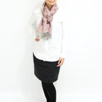スタンダードな大判サイズで、首に巻くことはもちろん、室内でのひざ掛けにも、肩から羽織る使い方もできます。特に羽織りは、パッと華やかにエレガントな雰囲気に変わります。上半身を覆えるので、着ている服を気にせず合わせることができます。忙しい朝もコーディネートを気にする必要はありません。