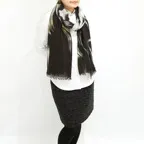 スタンダードなサイズ感で巻きでも羽織でも扱いやすく、室内のひざ掛けにも重宝します。用途を変えて様々な形で活用できる優れたストールです。