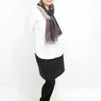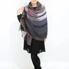 スタンダードなサイズ感で巻きでも羽織でも扱いやすく、室内のひざ掛けにも重宝します。用途を変えて様々な形で活用できる優れたストールです。