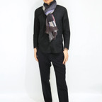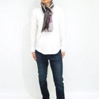 大判の長方形で、端面はナチュラルな断ち切り加工を施しています。どんな巻き方をしても表情豊かでお洒落な印象になります。また、折りたたんで使えばスッキリとシャープなシルエットになります。