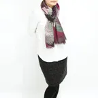 色と柄を掛け合わせたお洒落な一枚。巻き方によってさまざまな表情を見せてくれます!
