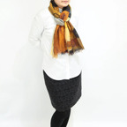 大判の長方形で、端面はナチュラルな断ち切り加工を施しています。どんな巻き方をしても表情豊かでお洒落な印象になります。また、折りたたんで使えばスッキリとシャープなシルエットになります。