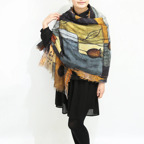まるでアートのようなグラフィカルなデザイン。ファッショニスタに贈る、ライトな着け心地のウールストールです。