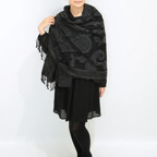 スタンダードな大判サイズで、首に巻くことはもちろん、室内でのひざ掛けにも、肩から羽織る使い方もできます。特に羽織りは、パッと華やかにエレガントな雰囲気に変わります。上半身を覆えるので、着ている服を気にせず合わせることができます。忙しい朝もコーディネートを気にする必要はありません。