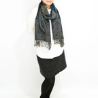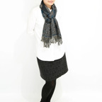 スタンダードな大判サイズで、首に巻くことはもちろん、室内でのひざ掛けにも、肩から羽織る使い方もできます。特に羽織りは、パッと華やかにエレガントな雰囲気に変わります。上半身を覆えるので、着ている服を気にせず合わせることができます。忙しい朝もコーディネートを気にする必要はありません。