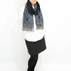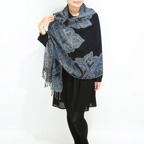 スタンダードな大判サイズで、首に巻くことはもちろん、室内でのひざ掛けにも、肩から羽織る使い方もできます。特に羽織りは、パッと華やかにエレガントな雰囲気に変わります。上半身を覆えるので、着ている服を気にせず合わせることができます。忙しい朝もコーディネートを気にする必要はありません。