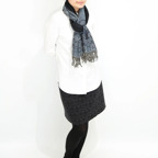 透け感のある生地で想像以上にスッキリまとまります。アウターの中にも収めやすく、インにアウトに扱いやすいストールです。
