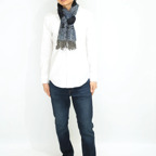 透け感のある生地で想像以上にスッキリまとまります。アウターの中にも収めやすく、インにアウトに扱いやすいストールです。