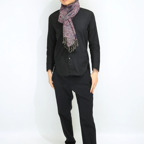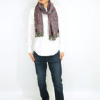 大人の格好良さが引き立つジャカードストール。ウール特有のちくちく感が苦手な方も気持ちよく身につけることができます。
