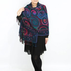 スタンダードな大判サイズで、首に巻くことはもちろん、室内でのひざ掛けにも、肩から羽織る使い方もできます。特に羽織りは、パッと華やかにエレガントな雰囲気に変わります。上半身を覆えるので、着ている服を気にせず合わせることができます。忙しい朝もコーディネートを気にする必要はありません。