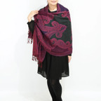 スタンダードな大判サイズで、首に巻くことはもちろん、室内でのひざ掛けにも、肩から羽織る使い方もできます。特に羽織りは、パッと華やかにエレガントな雰囲気に変わります。上半身を覆えるので、着ている服を気にせず合わせることができます。忙しい朝もコーディネートを気にする必要はありません。