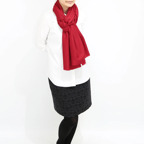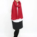 215cm×105cmの大判ショールサイズで、巻きでも羽織でもどちらも使いやすいストールです。首に巻くと程よいボリューム感を出すことができ、小顔効果も期待できます。