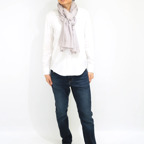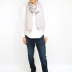215cm×105cmの大判ショールサイズで、巻きでも羽織でもどちらも使いやすいストールです。首に巻くと程よいボリューム感を出すことができ、小顔効果も期待できます。