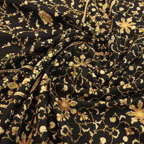 195cm×100cm大判ショールサイズで、巻きでも羽織でもどちらも使いやすいストールです。特に羽織は全面に施された刺繍が美しく輝き、サッとあしらうだけでゴージャスな雰囲気に変化します。横幅が特に長いのでドレスや着物などの羽織物としても重宝します。