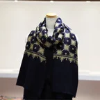 195cm×100cm大判ショールサイズで、巻きでも羽織でもどちらも使いやすいストールです。特に羽織は全面に施された刺繍が美しく輝き、サッとあしらうだけでゴージャスな雰囲気に変化します。横幅が特に長いのでドレスや着物などの羽織物としても重宝します。