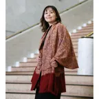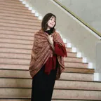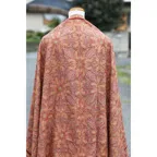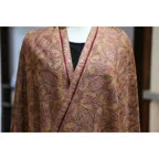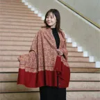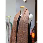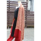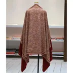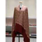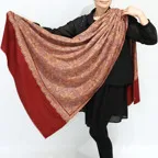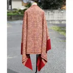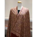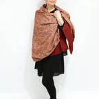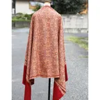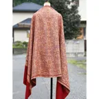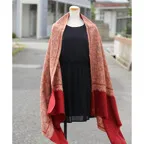 195cm×100cm大判ショールサイズで、巻きでも羽織でもどちらも使いやすいストールです。特に羽織は全面に施された刺繍が美しく輝き、サッとあしらうだけでゴージャスな雰囲気に変化します。横幅が特に長いのでドレスや着物などの羽織物としても重宝します。