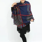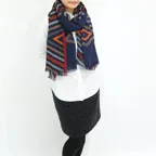 サイズの大きなショールタイプで、首に巻くことはもちろん、室内でのひざ掛けにも、肩から羽織る使い方もできます。