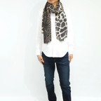 生地感よりカジュアルな普段使いにも、少しフォーマルなシーンでも使いやすいタイプです。スタイルや場所を問わず合わせることができる優れたストールです。