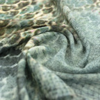 非常に大きなショールサイズで、広げて羽織れば上半身をすっぽりと覆うことができます。縦横の長さも十分にあるため、巻き方の自由度が広がります。程よいボリューム感と立体感を簡単につくることができるため、一巻きでこなれた印象になります。面積もあるので、真夏の室内での冷房対策や膝掛けとしても使いやすくなっています。