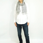 一枚持っていると何かと重宝する、着まわし力抜群のグレイストール。サイズも小さく手軽に巻きやすくなっています。