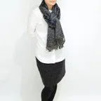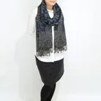 縦の長さが220cm、横幅105cmの特大ショールサイズで、ゆるっと巻くだけで立体的でボリューム感のある表情を作り出せます。広げて羽織れば上半身をすっぽりと覆うことができるのでトップスを気にせず合わせることができます。秋冬のアウター代わりにはもちろん、真夏の室内での冷房対策や膝掛けとしても使いやすくなっています。
