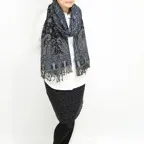 縦の長さが220cm、横幅105cmの特大ショールサイズで、ゆるっと巻くだけで立体的でボリューム感のある表情を作り出せます。広げて羽織れば上半身をすっぽりと覆うことができるのでトップスを気にせず合わせることができます。秋冬のアウター代わりにはもちろん、真夏の室内での冷房対策や膝掛けとしても使いやすくなっています。